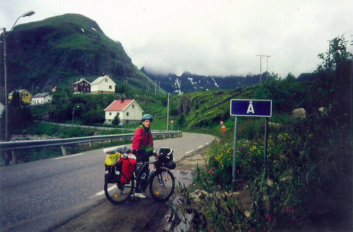 | In Narvik nahmen wir unsere Fahrräder in Empfang und machten uns auf den Weg in Richtung der Lofoten, vorbei an rot-weißen Holzhäuschen, entlang am Meer, durch Tunnel und über Berge und konnten den typ. Kontrast zwischen hoch aufragenden, kahlen Felsen und dem Meer direkt daneben bewundern. Für die Nächte fanden sich idyllische kleine Schlupfwinkel am Straßenrand und so erreichten wir nach ein paar Tagen das Ende der tw. nur noch einspurigen Europastraße und unser "vielsagendes" Wochenziel: Å am Südzipfel der Lofoten. | ||